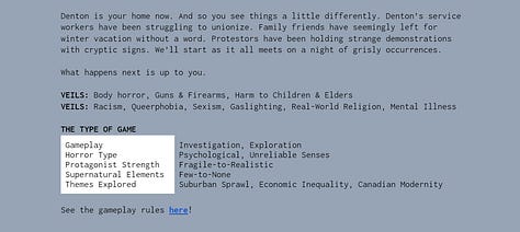 If you choose a MAIL GAME, I like sharing a Google doc with links to the game rules and mood music on the first page. Creating and resolving comments is an unintrusive way to notify other players that you’re passing the pen to them. Emails solve the notification issue, but don’t let you play with fonts/links/immersion in the same way.