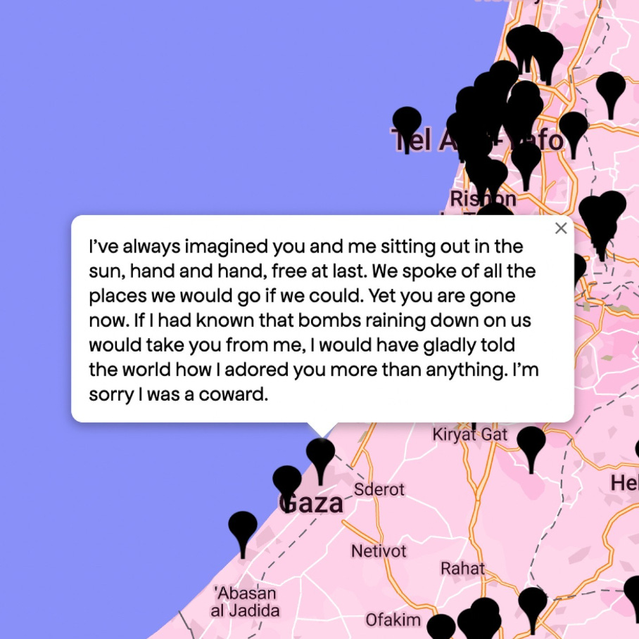 The map's individual stories are a constant reminder that our glimpse is incomplete. It avoids essentializing exotic queers, the way we might through academia or entertainment. It gives physical locations new meaning. That road’s not just a political border between two counties, it’s where someone learned they were trans. That city’s not just the victim of an infamous earthquake, it’s where someone met their ex-husband. The project challenges efforts to erase and legislate queerness out of human history.